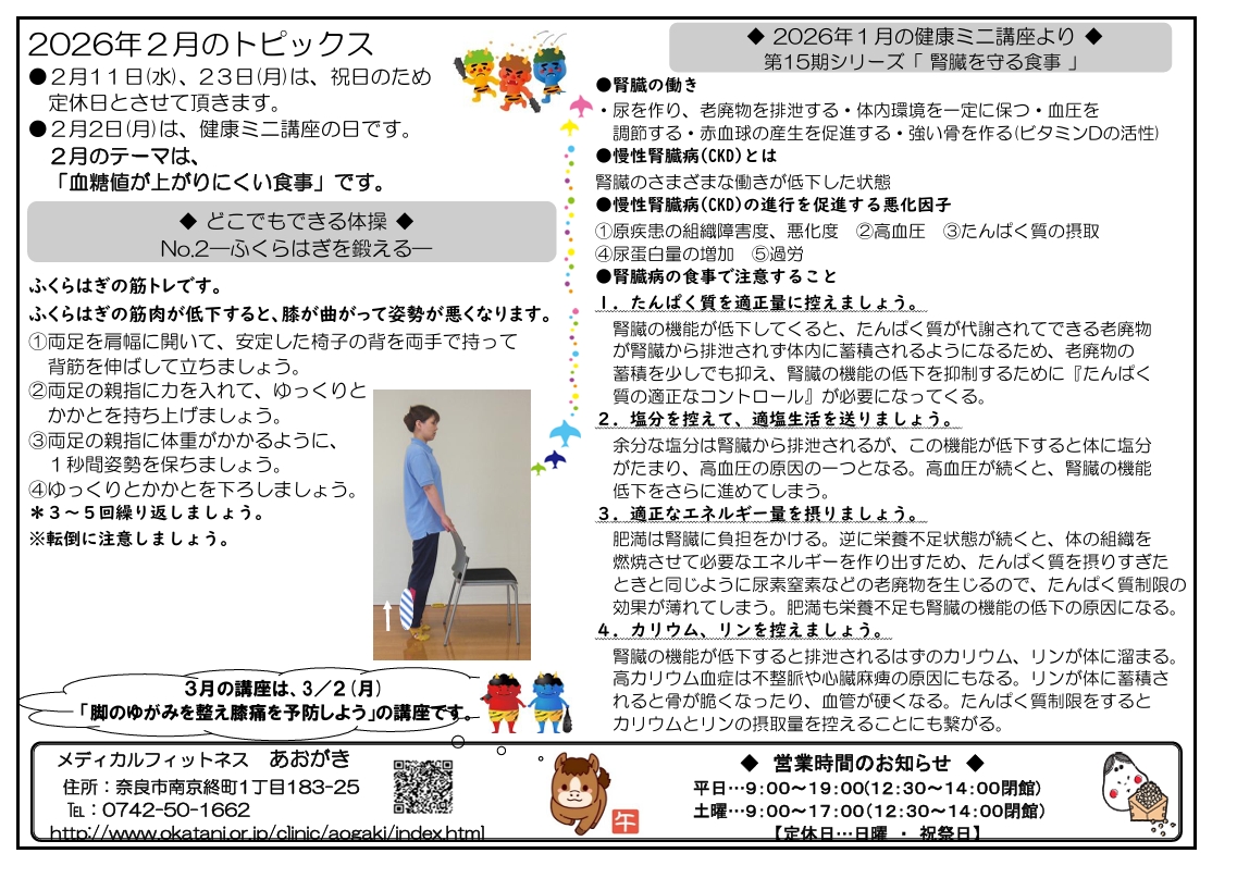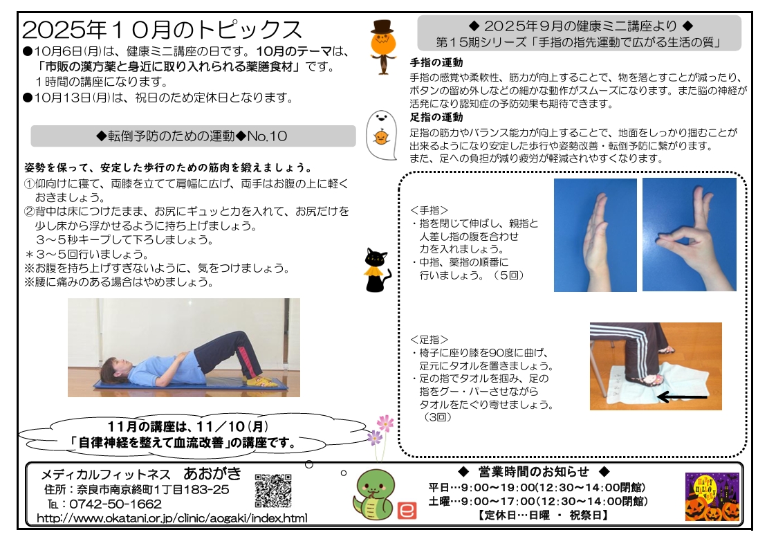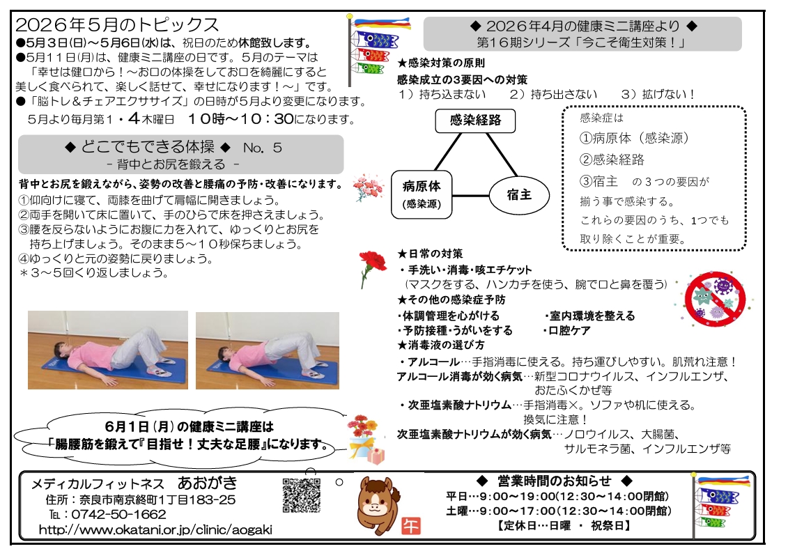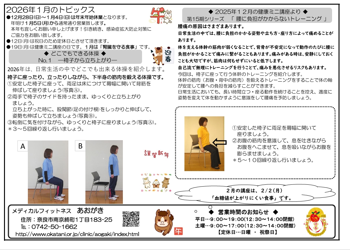 お家で出来る体操や筋力トレーニングなどを紹介します。