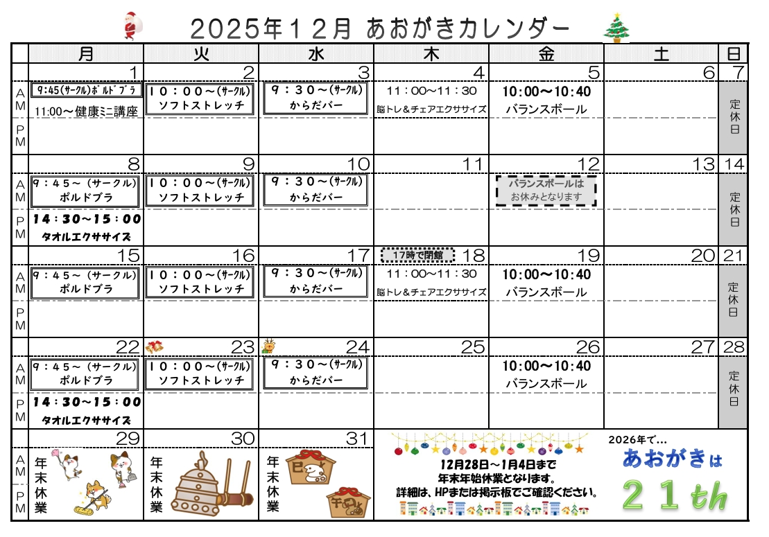 毎日少しずつ体を動かす事で、筋力低下を防いだり血液の循環が良くなることで生活習慣病の予防や認知症予防、ストレス解消にもなります。