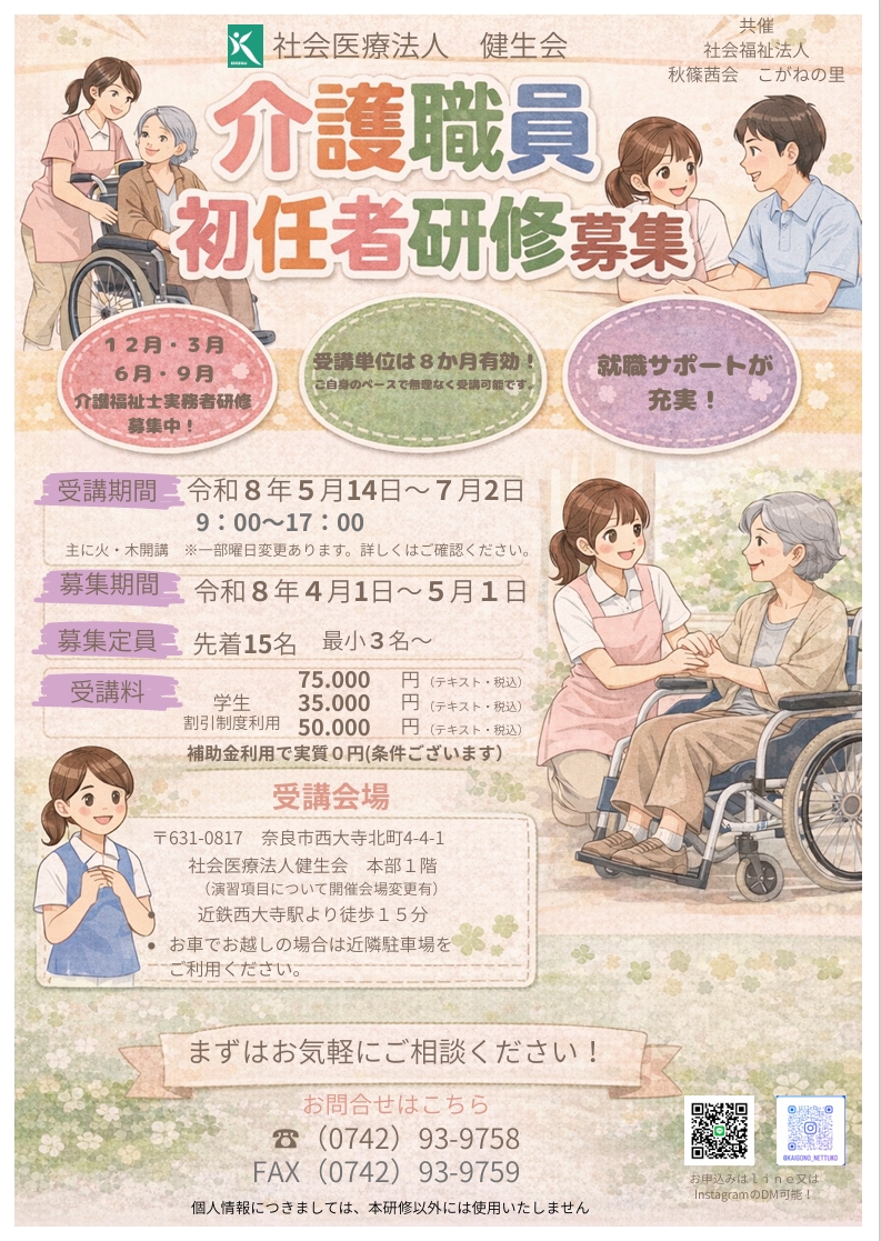 研修募集の案内以外にも介護の事もお伝えできればと思っております。
