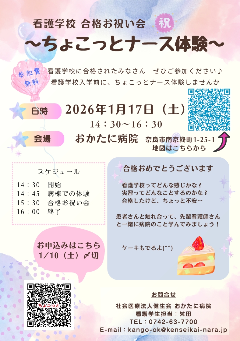 少しでも看護師という仕事に興味のある方はお気軽にご参加ください。