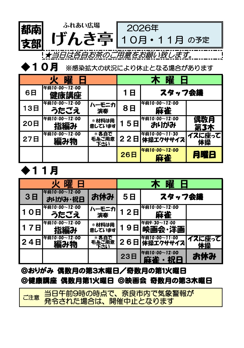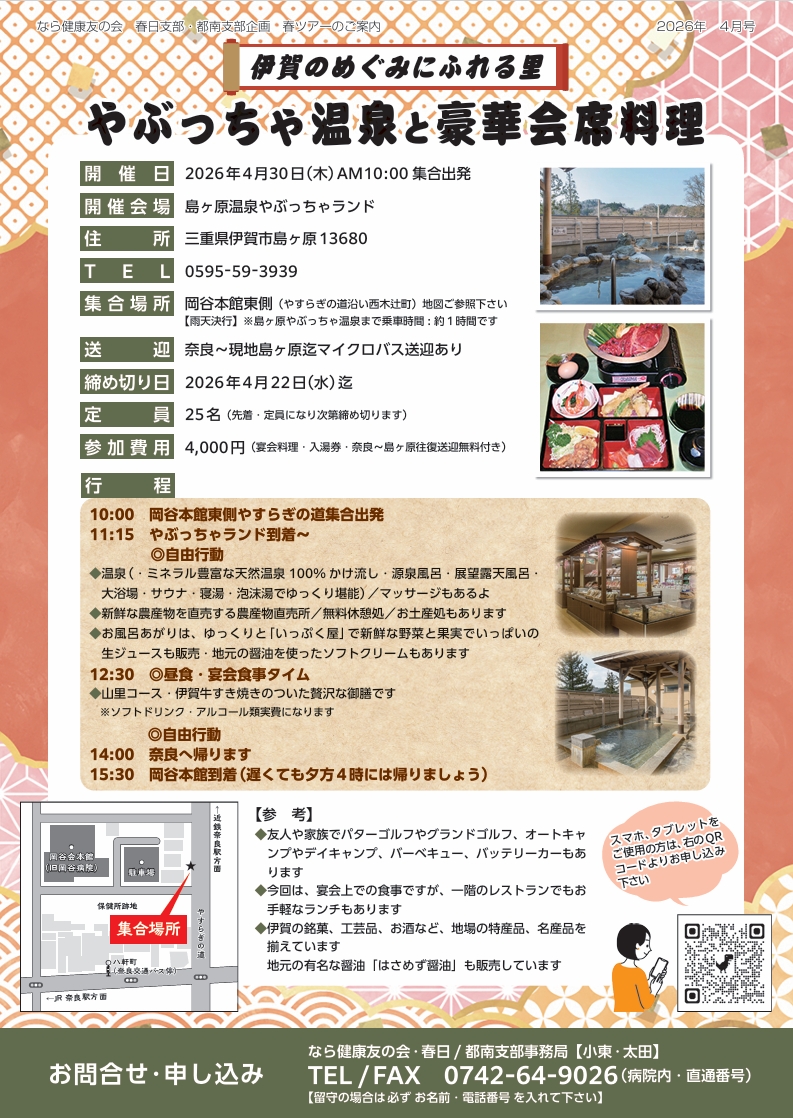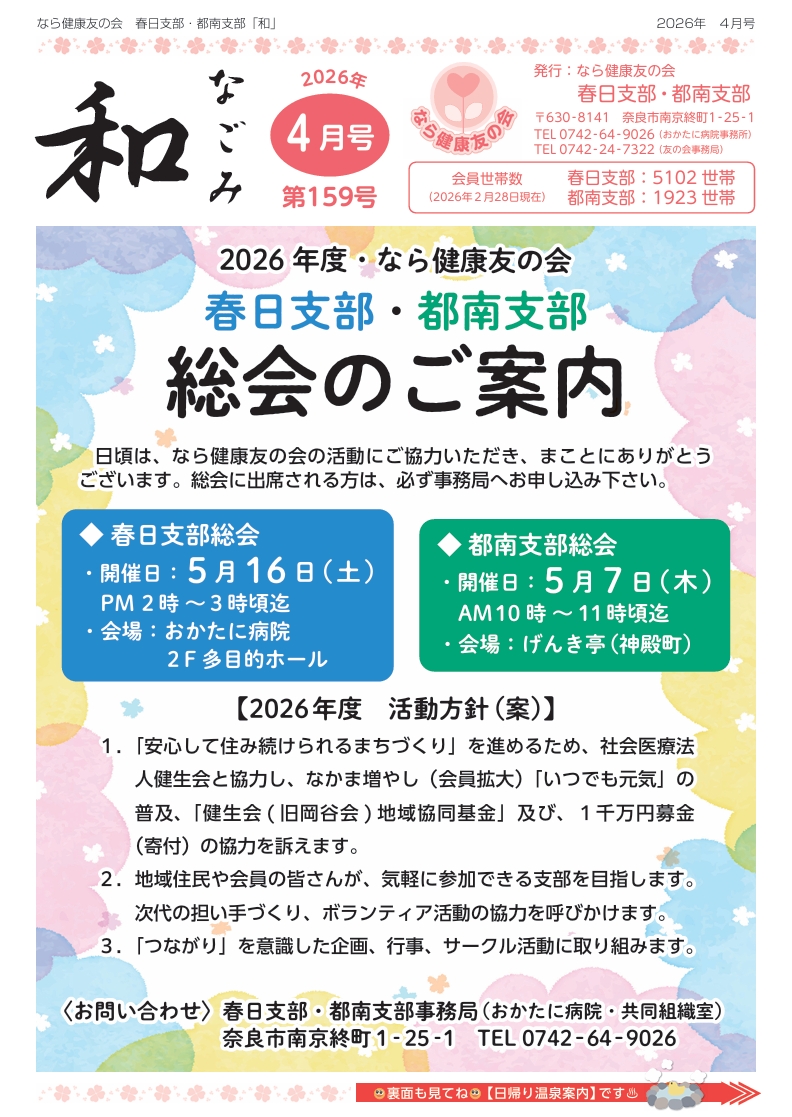 お問い合わせ … なら健康友の会 春日・都南支部事務局(℡ 0742-64-9026)まで
