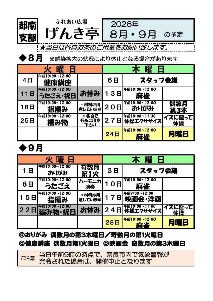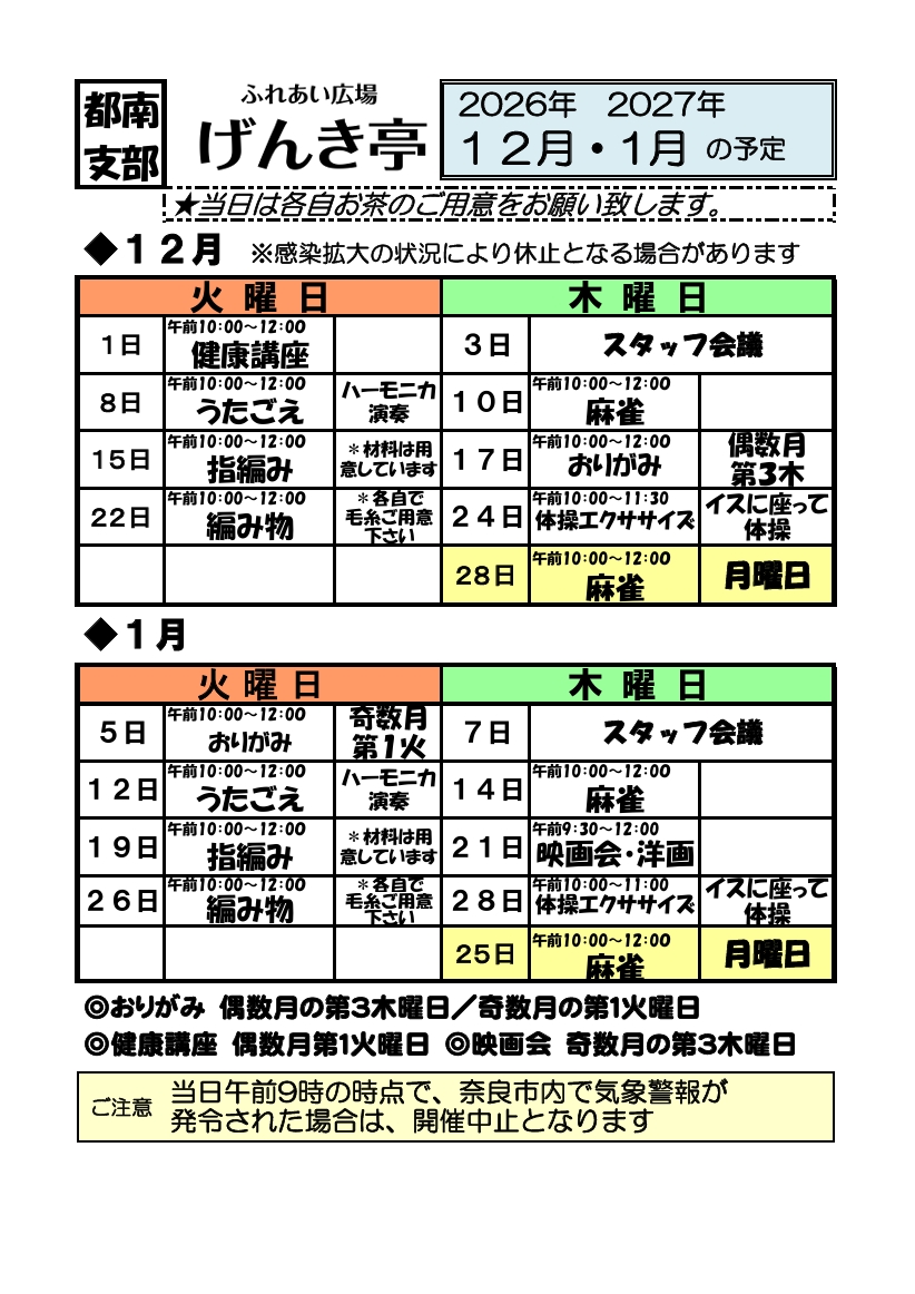 日時 … 第2・4木曜日 14:00~ (冬季・夏季7・8月は中止)